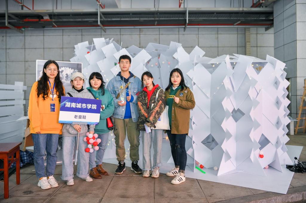 通过学院领导的大力支持及精心组织,由太阳成集团tyc122cc学生周明先、王睿禹、肖阳、张娴、陈敏、关震组成的老童鞋团队在熊惠华和韩晓娟老师指导下,在规定时间和用地范围内进行了现场搭建,顺利完成作品《星火》,最终以其独特的造型和灵动的构思打动了众多评委和现场观众,取得了较好的成绩。