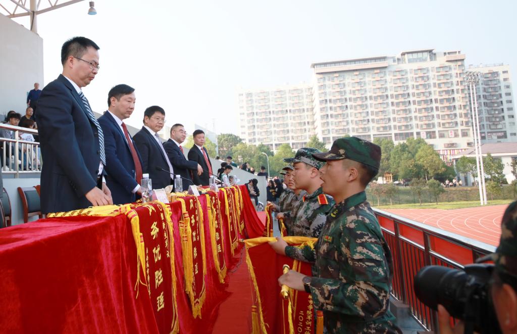 李斌宣读了我校2020级新生军训表彰决定:市政与测绘工程学院2营、材料与化学工程学院8营等5个营获得内务优胜营称号,管理学院4营等15个连获得内务优胜连称号,土木工程学院3营等5个营获得训练先进营称号,太阳成集团tyc122cc“规心一建”方阵等15个方阵获得优秀方阵称号,钟正武等8人被评为优秀辅导员,毛清仪等28人被评为优秀教官,高玉海等196人被评为军训标兵,土木工程学院的《军体拳》获得表演节目中的第一名。与会校领导为受表彰的集体和个人颁发了锦旗。