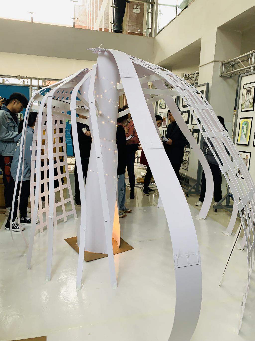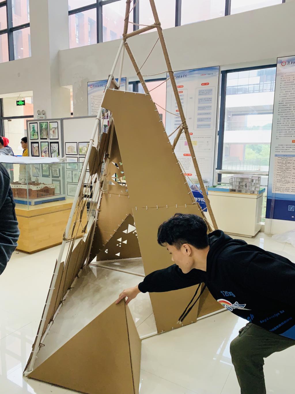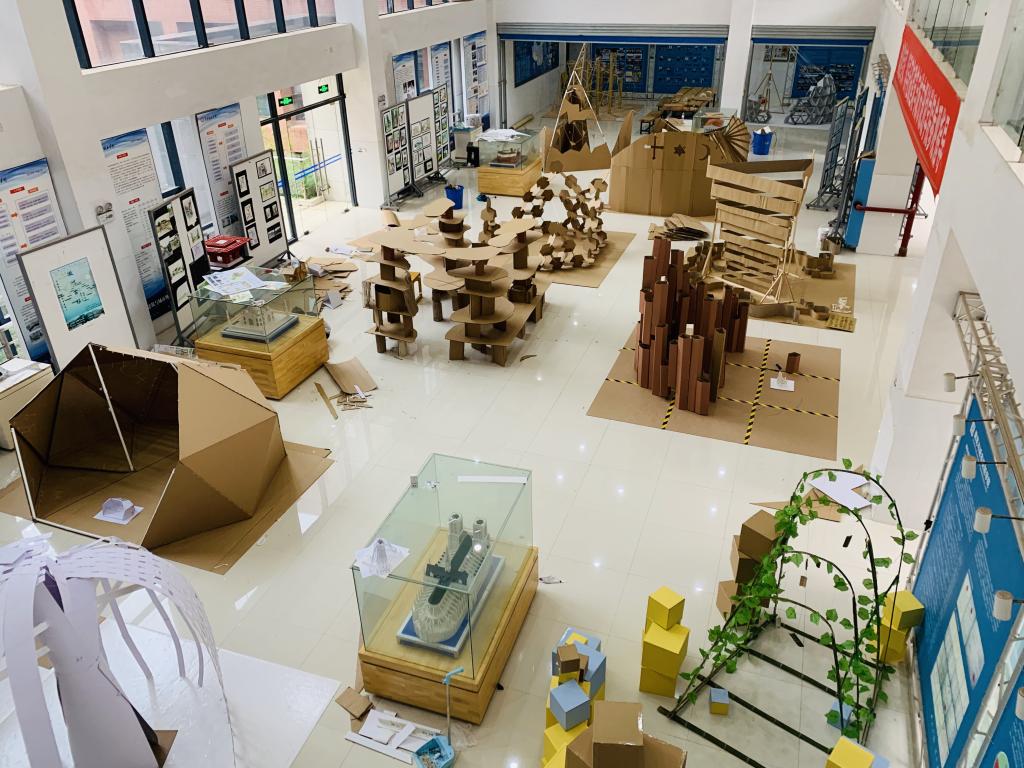 本次建筑学系二年级组1:1建筑模型搭建以“童趣”为主题,鼓励同学们展开想象,突出人在空间里真实活动的体验。发现并构建材料之美,思考建筑结构的稳定性,探讨建筑空间构成手法的多样性,把握团队协作的重要性。