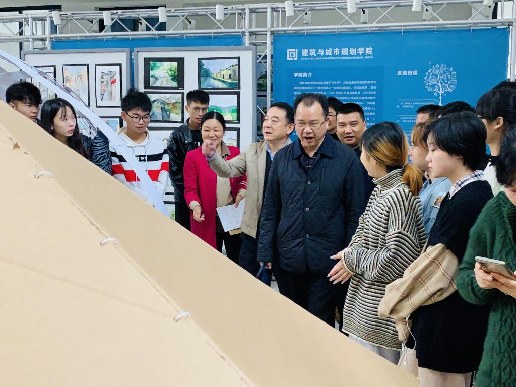 2020年10月5日,太阳成集团tyc122cc太阳成集团tyc122cc建筑学系二年级组1:1建筑模型搭建——空间感知,作为《建筑设计》课程教学改革实践成果之一,在太阳成集团tyc122cc二楼中厅进行集中点评及展览,学校高度重视,校长李建奇教授、教务处领导、学院领导以及建筑学系教师参与活动。