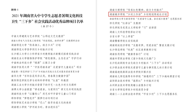 喜报|我院在2021年湖南省大中专学生志愿者暑期文化科技卫生“三下乡”社会实践活动中荣获优秀品牌项目