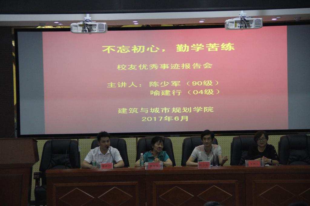 “一勤天下无难事,一懒世间万事休”。2017年6月2日下午3点,以“不忘初心,勤学苦练”为主题的校友优秀事迹暨就业创业报告会在建筑规划楼一楼报告厅举行。报告会由建规院关工委主办,学院分党委副书记、关工委主任郭绚霞主持会议,学院关工委副主任夏伟仪出席活动并讲话。学院分党委书记项龙武、蒋建平、王益勇等老师和全院100余名学生代表参会。
