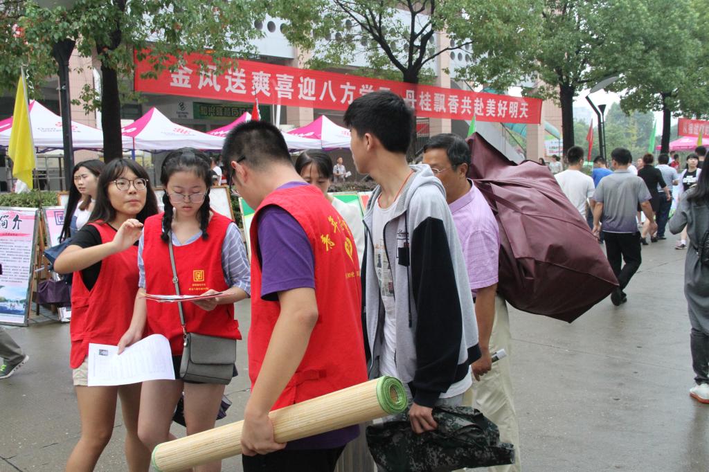 天虽下着小雨,却丝毫没有影响到大家迎新的热情。学院全体迎新工作者分工合作,秩序井然,圆满完成了我院迎新工作,得到了学校、家长和新生的一致好评。
