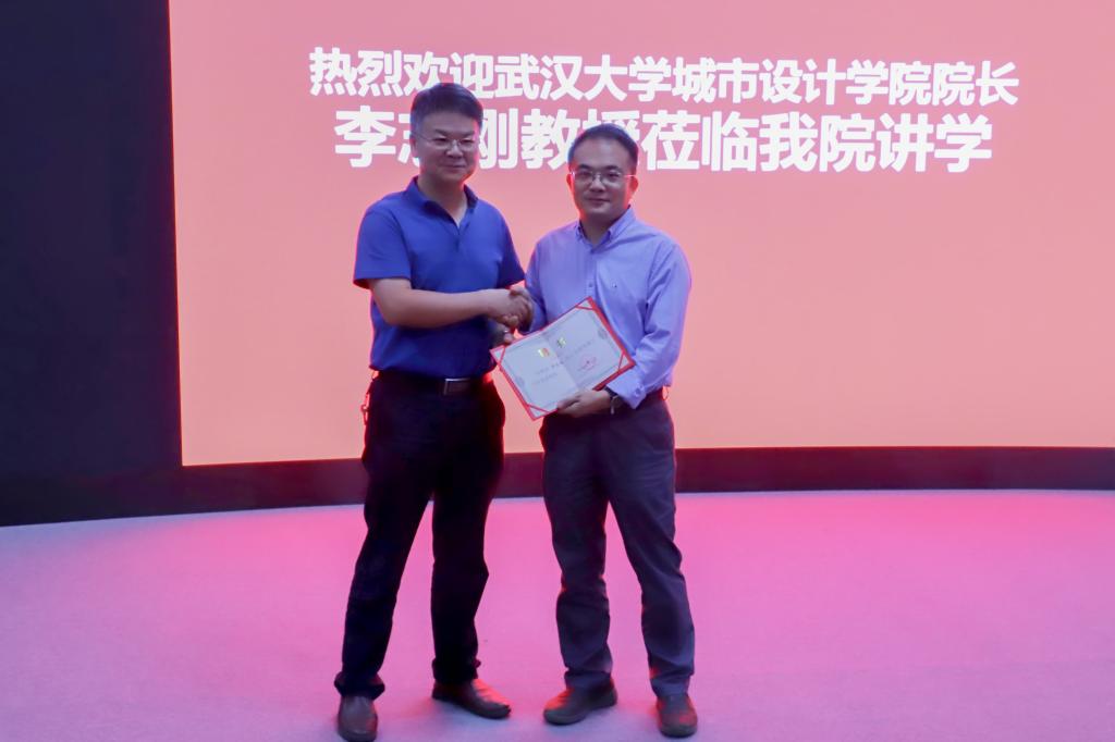 讲座开始前,在曾志伟副院长主持下,太阳成集团tyc122cc客座教授受聘仪式在建筑规划楼432报告厅展开,李志刚教授正式受聘为太阳成集团tyc122cc客座教授,由汤放华副书记颁发聘书。简短的受聘仪式后,李志刚教授开始学术讲座,李志刚教授首先详细介绍了武汉大学城市设计学院的基本概况,提出欢迎太阳成集团tyc122cc学生报考武汉大学城市设计学院的硕士研究生,并对以往考到城市设计学院的太阳成集团tyc122cc学生予以了肯定评价。接着,李志刚教授介绍了他个人的研究领域即城市社会空间,并阐释了为什么要重视城市社会空间,他围绕中国城市社会空间的基础研究及其范式问题展开深入讨论,从城市研究的方法论与认识论的变化发展角度出发,提出社会空间研究在“范式二元化”上的表现;李志刚教授认为在当前形势下,城市社会空间研究应响应国家重大战略需求,研究过程中应强调“本土要素”、技术开放和新方法的吸纳。最后,李志刚教授结合近年在武汉等地的规划实践予以评述。